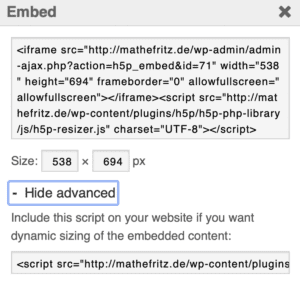 Ihr könnt die online Aufgaben auf der eigenen Web-Seite oder einer anderen Seite einbinden. Klicke hierzu auf “<>Embed” unter der Aufgabe!